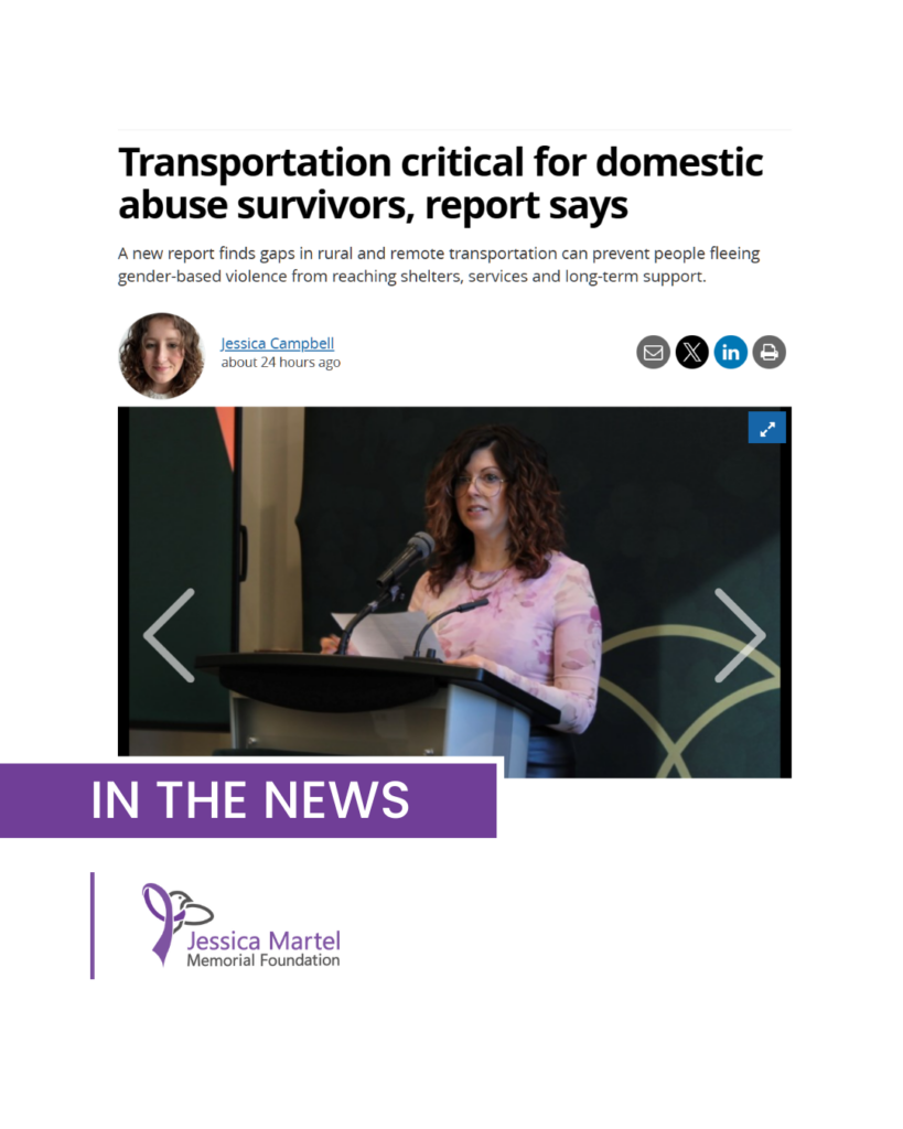 - March 19 – New report draws attention to transportation issues faced by rural survivors of domestic violence– Calgary Herald